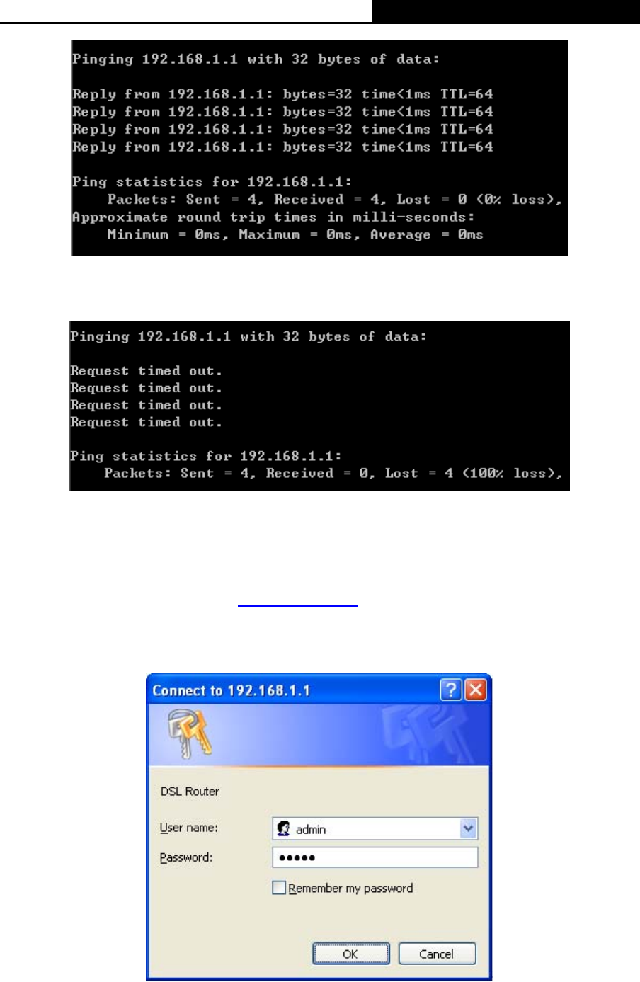 ADSL connection is OK, the following login box will pop up. Enter default user name (admin) and
